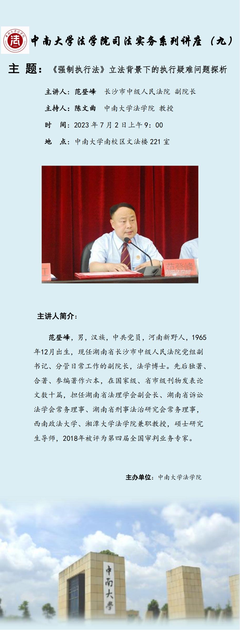 【讲座预告】范登峰:《强制执行法》立法背景下的执行疑难问题探析