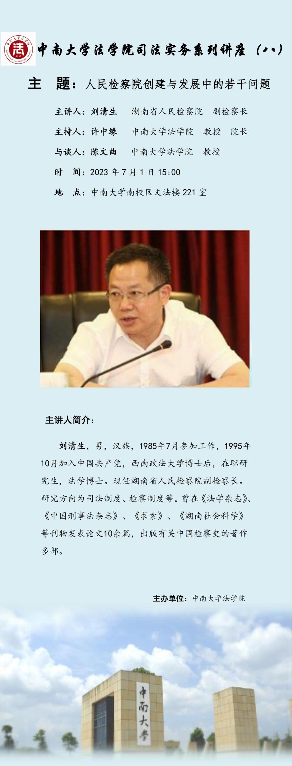 【讲座预告】刘清生:人民检察院创建与发展中的若干问题