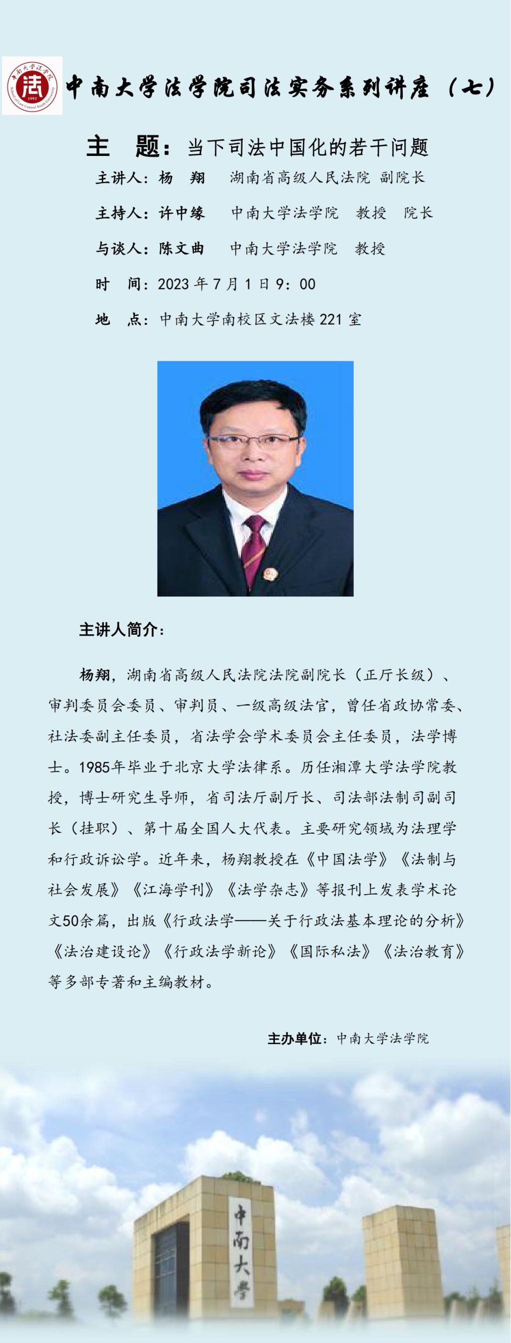 【讲座预告】杨翔:当下司法中国化的若干问题