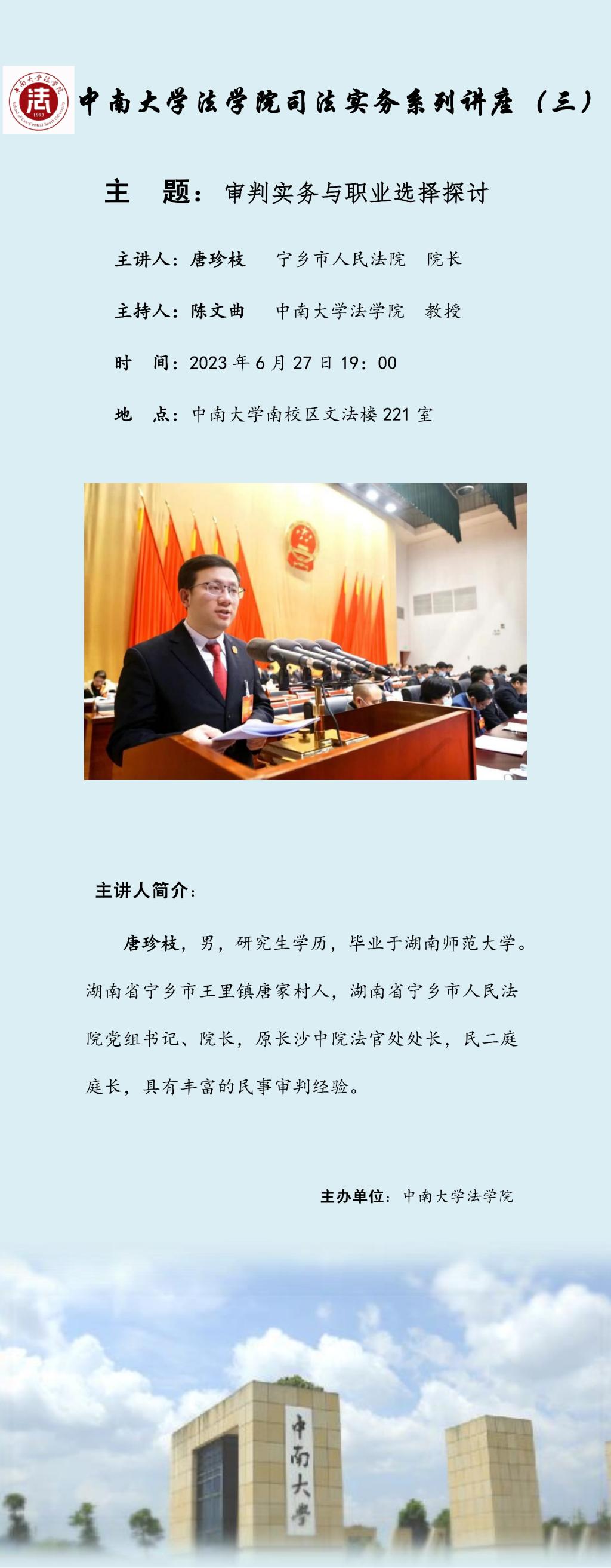 【讲座预告】唐珍枝:审判实务与职业选择探讨