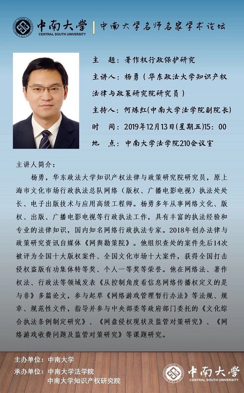 主 讲 人:杨勇(华东政法大学知识产权法律与政策研究院研究员)