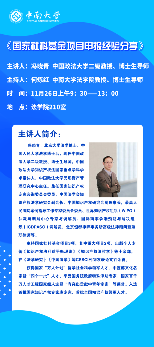 【讲座预告】冯晓青:国家社科基金项目申报经验分享