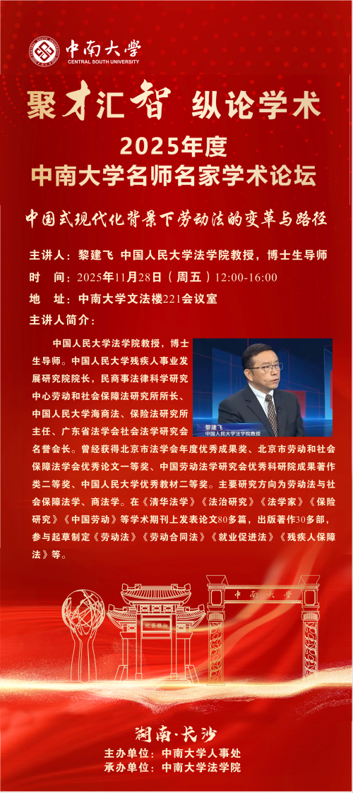 【讲座预告】黎建飞:中国式现代化背景下劳动法的变革与路径