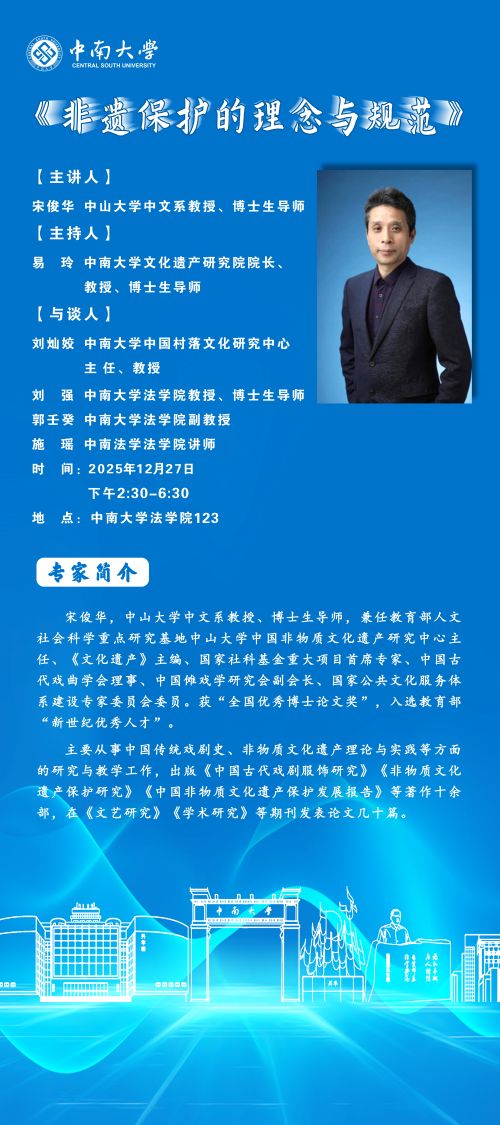 【讲座预告】宋俊华:非遗保护的理念与规范