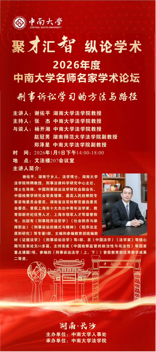 【讲座预告】谢佑平:刑事诉讼学习的方法与路径