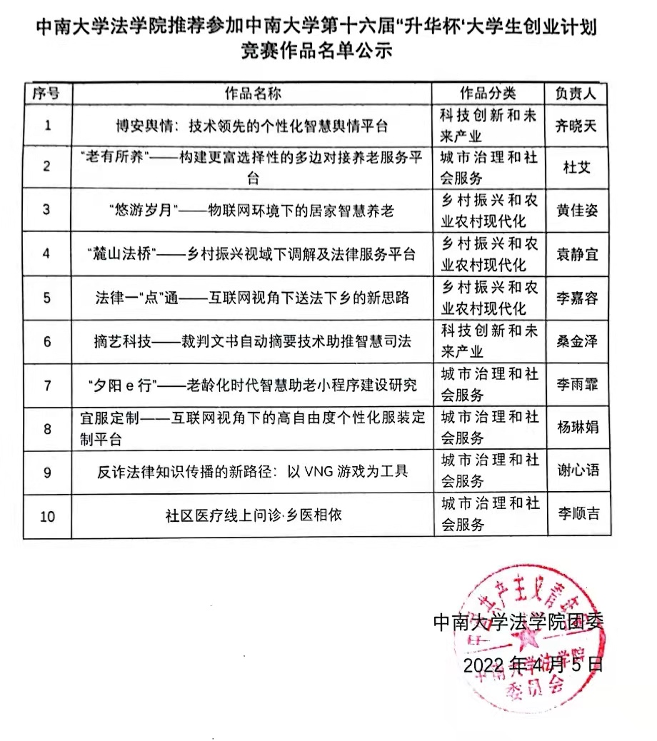 英国365集团公司推荐参加英国上市官网365第十六届升华杯大学生创业计划竞赛作品名单展示