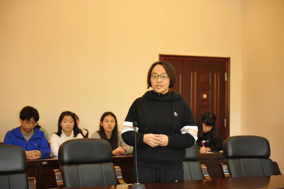 永雄助学奖励金优秀班导师奖获得者代表王红霞老师发言。王红霞老师强调了当今教育事业中教师素质的重要性,她指出,为人师表,不仅要在日常工作中兢兢业业,爱党爱集体,更要贴近现实,走进学生,关心同学们学习生活的同时也要注重心理沟通。