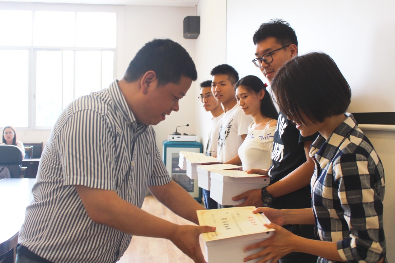 随后进入颁奖环节,王新平书记分别为各部门宣传干事颁发奖状与奖品。与会领导老师和全体参会学生干部合影留念,使受到表彰的同学们感受到了极大的激励与鼓舞。