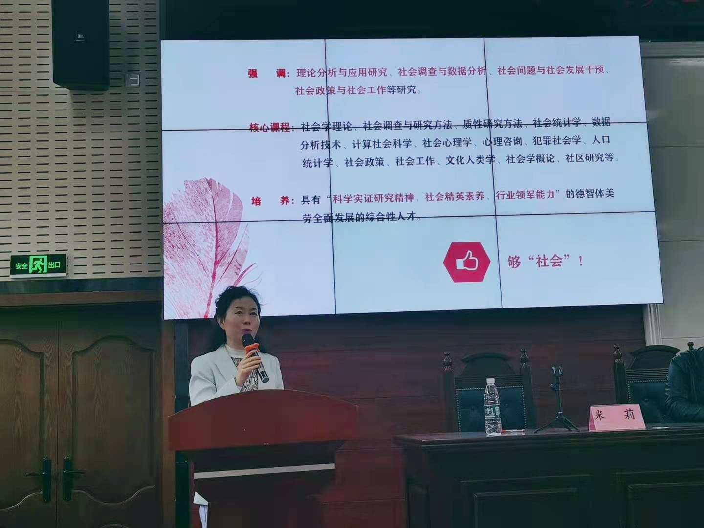 会议伊始,黄曦副书记介绍了参会领导和老师,并对同学们的到来表示欢迎,鼓励同学们深入了解专业概况,选择适合自己的学术道路。公共管理学院米莉副教授首先为同学们深入介绍了社会学专业,米莉副教授从社会学自身特点、英国上市官网365社会学建设力量、社会学发展前景以及她自己学习社会学的经历讲起,通过生动的幻灯片和精彩的讲解让同学们领略了社会学中的诗与远方。