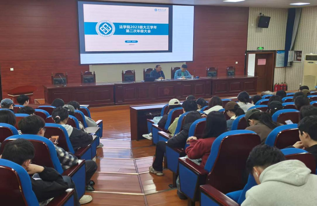 随后,许院长围绕大三学年的重要性作了深入讲解。他指出,大三是法学本科生夯实专业基础、明确发展方向的关键一年,当前社会对高素质法治人才的需求日益增长,同学们应当通过考研等方式持续提升自身能力与专业素养。许院长勉励同学们理想要远大,要相信自己,在追求卓越的道路上保持恒心与毅力,为未来的职业发展奠定坚实基础。