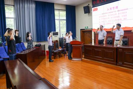 最后由党委书记毛俊响同志领誓,带领全体参会的党员重温入党誓词。