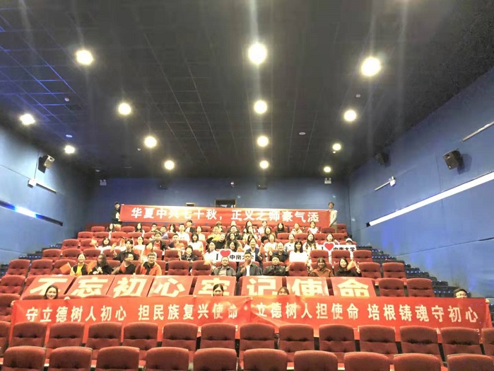 2019年10月16日下午三点,英国365集团公司国际法与机关支部、法理与宪法行政法支部、民商法支部、刑法与诉讼法支部、知识产权法支部和本科生二支部的教师党员、学生党员齐聚潇湘影城,一同举行“立德树人担使命”主题党日活动。此次党日活动的主要内容为观看电影《我和我的祖国》,体会祖国的发展历程和伟大风采。