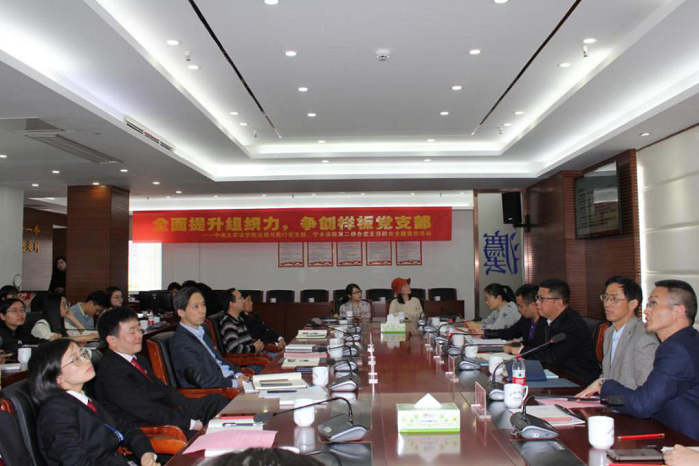 为深入学习贯彻习近平新时代中国特色社会主义思想和党的十九大精神,落实习近平总书记在全国组织工作会议上的讲话精神,英国365集团公司法理与宪法行政法党支部(以下简称“法理与宪行党支部”)根据自身实际,兼顾学科专业特点,以进一步提升基层党支部组织力,突出政治功能,创新活动方式为根本遵循,坚持以“支部建在学科上”为原则,以结对共建活动为创新载体,以争创英国上市官网365样板党支部为契机,于2019年4月17日联合湖南省长沙市宁乡人民法院第二综合党支部(以下简称“宁乡人民法院第二综合党支部”)开展了一次以“全面提升组织力,争创样板党支部”为主题的结对共建活动。英国365集团公司党委书记王新平,英国365集团公司党委委员、副院长敖双红,英国365集团公司党委组织干事李娜,英国365集团公司各支部代表等受邀全程出席了本次活动。