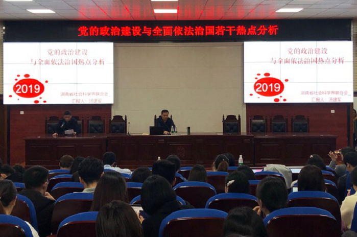 3月27日晚7时,我院党委邀请湖南省社科联党组成员汤建军研究员做客名师讲堂,为全体师生党员举办了一场以“党的政治建设与全面依法治国若干热点分析”为主题的讲座。讲座由院党委书记王新平主持,英国365集团公司9个党支部共180余位师生党员参加了本次活动。
