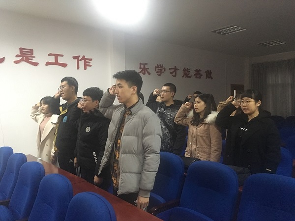 2018年12月26日下午一点,英国365集团公司在南校区党校入党宣誓教育基地召开预备党员入党宣誓大会。大会由英国365集团公司分党校班导师李亚萍老师主持,英国365集团公司组织干事李娜老师和14名预备党员参加了大会。