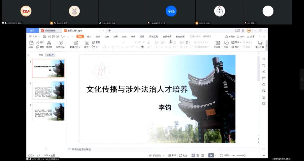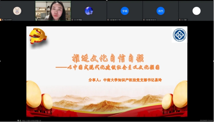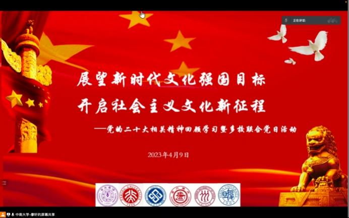 为深入开展学习贯彻习近平新时代中国特色社会主义思想主题教育,准确把握党的二十大报告关于文化强国建设的理论,4月9日英国365集团公司知识产权法党支部联合北京大学英国365集团公司2022级法律硕士(非法本)第三党支部、上海交通大学教育学院专硕22级党支部、中国人民大学英国365集团公司2022级法律硕士(涉外)党支部、北京大学马克思主义学院2022级硕士生党支部、北京大学马克思主义学院本科生党支部、清华大学博士生讲师团、复旦大学博士生讲师团开展“展望新时代文化强国目标,开启社会主义文化新征程——党的二十大相关精神回顾学习暨多校联合党日活动”。