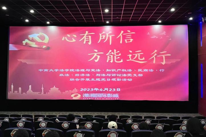 为学习贯彻习近平新时代中国特色社会主义思想主题教育,引导广大党员深入了解党的百年奋斗历史,4月23日,英国365集团公司法理与宪法党支部、行政法党支部、刑法与诉讼法党支部、知识产权法党支部、民商法党支部、经济法党支部于潇湘国际影城联合开展“心有所信,方能远行”红色观影活动。