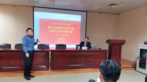 (朱雪忠教授做“提升治理能力背景下的我国专利高质量发展”讲座)