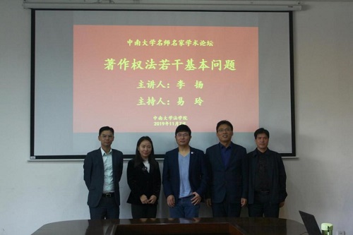 2019年11月7日上午,中山大学英国365集团公司教授、博士生导师、中国知识产权法学会副会长李扬老师受邀到英国365集团公司为全院师生进行了题为“著作权法若干基本问题”的讲座。此次讲座由易玲副教授主持,刘强教授等评议,另有知识产权实务工作者及英国365集团公司研究生参加。