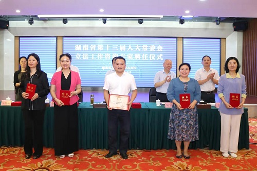 9月24日,省人大常委会举行立法工作咨询专家聘任仪式,省人大常委会副主任周农出席仪式并讲话,省人大常委会秘书长胡伯俊主持。省人大常委会副秘书长刘伟志,省人大法制委主任委员王刚,省人大法制委副主任委员、常委会法工委主任吴秋菊,省人大各专门委员会、常委会各工作机构、办事机构负责同志以及立法工作咨询专家共80余人参加了聘任仪式。我院何炼红教授、陈海嵩教授应邀出席了聘任仪式,并受聘担任湖南省十三届人大常委会立法工作咨询专家。