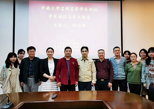 交流提问环节,陈云良院长就法学科学术研究中存在的实证研究分析短板进行了交流。何炼红教授就学术研究中如何发掘创新点进行了探讨。瞿昊晖博士就合作署名文章在期刊发表中面临的问题提出自己的看法。本次讲座何教授聚焦近期学术不端问题,在海量实例中总结出学术研究中常见的不诚信现象,从作者保护角度出发讨论了“抄袭”、 “数据真实性”、“合署名”、师生行为规范和学术发表等问题,语言恳切,内容丰富,给现场学生以启迪和指引,尤其是对从事学术研究和论文撰写助益很大。在热烈的掌声中,关于“学术诚信与学术规范”的讲座圆满结束。