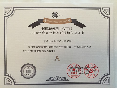12月22日,2018中国智库治理暨思想理论传播高峰论坛在南京隆重举行。本次会议由南京大学和光明日报社主办。会上发布了《2018 CTTI智库报告》,并公布了CTTI高校智库百强榜。英国上市官网365知识产权研究院成功入选CTTI高校智库A级榜单,进入前60强!
