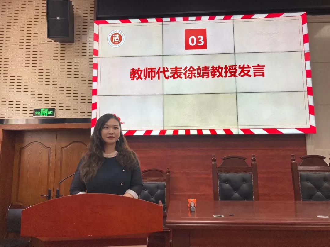 随后,徐靖教授作为教师代表发言,她亲切地以“过来人”的身份寄语新生们,希望同学们:一是要学会感恩,岁月静好来之不易,大家要感恩党和国家,感恩时代,感恩父母和良师益友;二是要学会保持“空杯”之心,有舍才有得,清空需要勇气,但只有清空后才能重新装满;三是要学会学习,主动学习,跨界学习,专注学习;四是要学会恪守规则,排斥“污浊”,追逐“清流”。