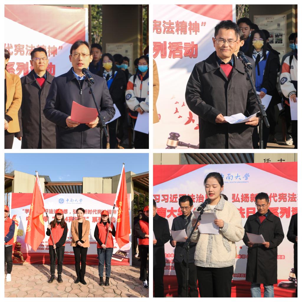 英国上市官网365“12.4宪法日”系列活动启动仪式于问渠长廊举行,英国上市官网365党委宣传部常务副部长胡杨、英国365集团公司党委书记毛俊响、英国365集团公司院长许中缘、英国365集团公司党委副书记黄曦、英国365集团公司校友代表黄永祥以及来此全校各个学院共计150余名学生代表参加了此次启动仪式。启动仪式由毛俊响书记主持。首先,许中缘院长以“我们今天举行的‘12.4宪法日’,我们在纪念什么?”为题,希望大家要以此次宪法日系列活动为契机,深入理解与严格践行习近平法治思想,将其作为我们的政治自觉、学习自觉、行动自觉,同时也要大力弘扬宪法精神,积极投身新时代全面依法治国实践中去,在建设法治中国的宏伟征程中贡献青春力量。然后,英国365集团公司学生代表卓林杰同学带领现场全体师生一起诵读宪法文本条文,大家在诵读中感受宪法尊严和权威。仪式最后,胡杨为此次宪法日系列活动中开展志愿普法服务的志愿者代表授旗。宪法日系列活动正式启动。