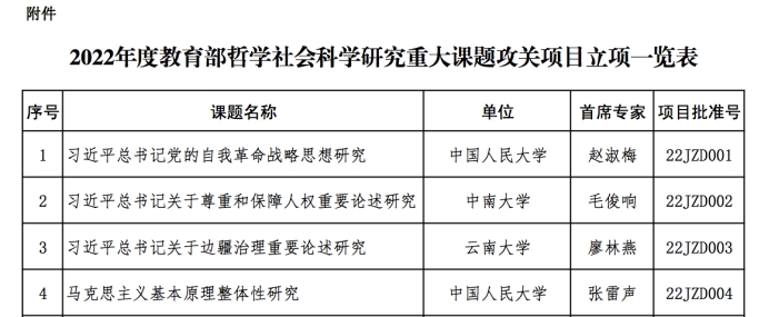 近日,2022年度教育部哲学社会科学研究重大课题攻关项目名单公布。经组织专家严格评审和面向社会公示,共有51项批准立项。