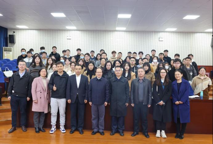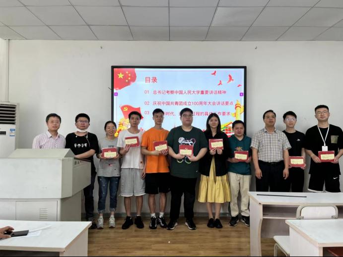 【副校长柴立元院士为支部讲授党课后同党员们合影】