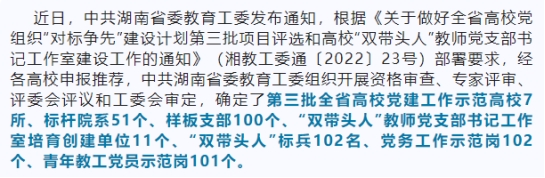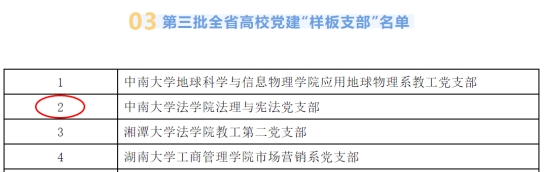 近日,中共湖南省委教育工委公布了全省高校党组织“对标争先”建设计划第三批项目评选结果,其中确定了100个第三批全省高校党建工作“样板支部”,英国365集团公司法理与宪法党支部入选。