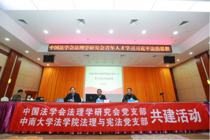 支部加强学习宣传习近平新时代中国特色社会主义思想,并结合学科专业特点,以习近平法治思想为重点组织开展相关党日活动。例如,2020年12月12日,即党史上第一个中央全面依法治国工作会议召开、正式明确提出习近平法治思想的25天后,法理与宪法党支部联合中国法学会法理学研究会党支部在长沙开展支部共建活动,以“青年人才学习习近平法治思想”为主题,邀请中国法学会法理学研究会副会长胡玉鸿、中国法学会研究部二级调研员孙立军做辅导报告。2021年3月、4月,支部组织听取中国法学会副会长江必新讲授“关于习近平法治思想研究之研究”“法治百年发展史”专题党课。