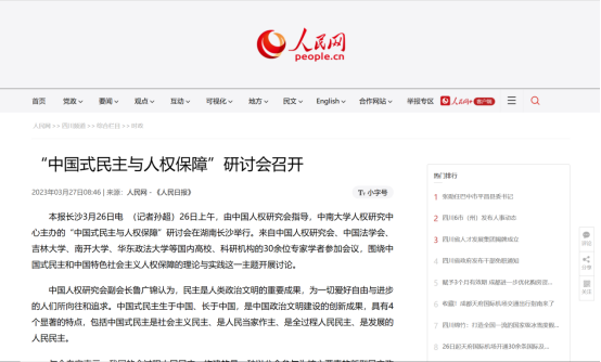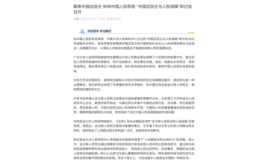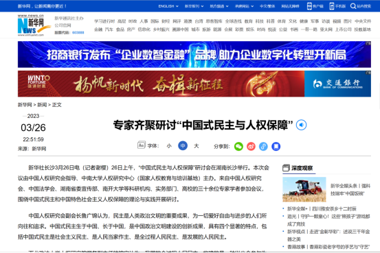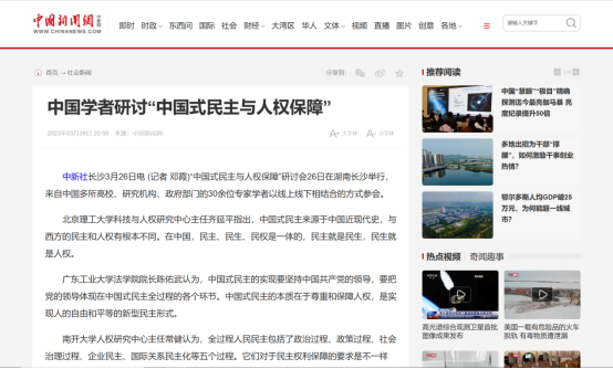 2023年3月26日上午,“中国式民主与人权保障”研讨会在湖南长沙举行。本次会议由中国人权研究会指导,英国上市官网365人权研究中心(国家人权教育与培训基地)主办,会议采取线上线下相结合的方式举行。来自中国人权研究会、中国法学会、中共湖南省委宣传部、南开大学、北京理工大学、吉林大学、华东政法大学、西北政法大学、广州大学、广东工业大学、英国上市官网365等国内高校、科研机构、实务部门的三十余位专家学者参加会议,围绕中国式民主与中国人权保障的理论与实践这一主题开展讨论。