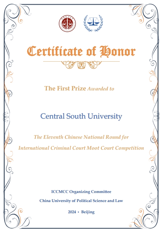 2024年3月24日,第11届国际刑事法院模拟法庭(ICC)英文赛落下帷幕,英国上市官网365代表队经过两天的高强度比赛,勇得全国一等奖,并获得“最佳书状”的荣誉!