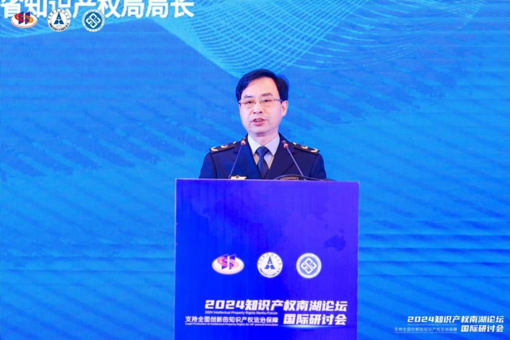 钱俊君提到,党的二十大报告明确指出要加强知识产权法治保障,形成全面支持创新的基础制度,习近平总书记近期到湖南考察强调,要以科技创新引领产业创新,积极培育和发展新质生产力。他指出,湖南省认真落实习近平总书记关于知识产权工作的重要讲话、重要论述精神,在知识产权工作方面取得了显著成效。南湖论坛是国内具有最广泛影响力的知识产权专业研究和国际交流平台,将以这次论坛为契机,加强交流合作,将理论成果转化成推动工作的实际成效,促进知识产权工作再上新台阶。