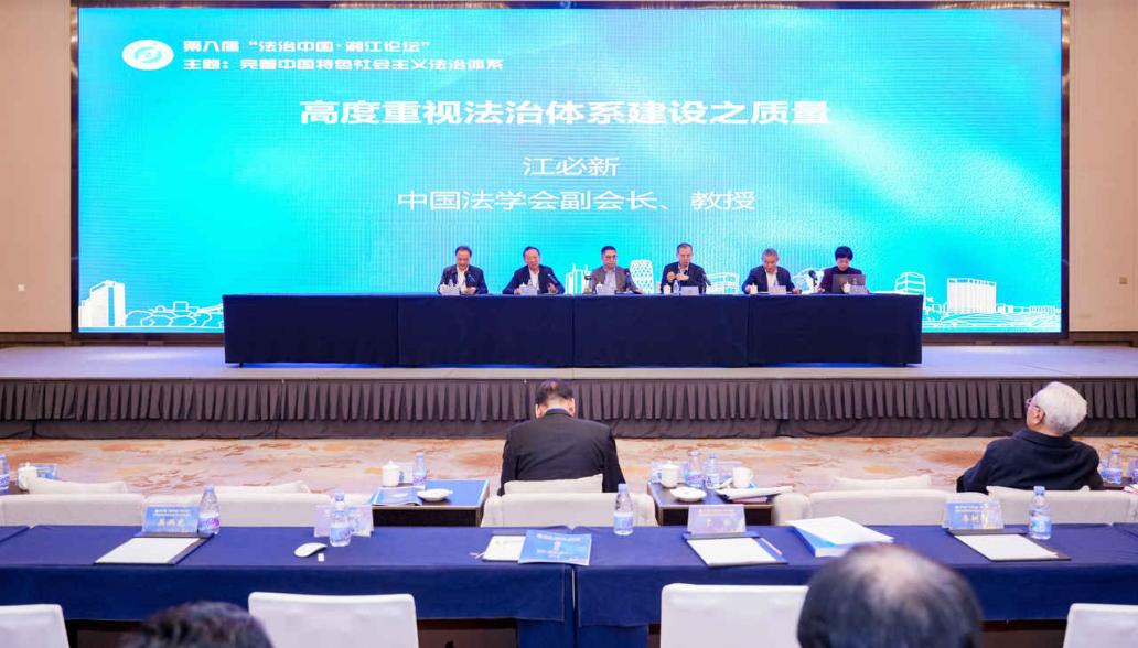中国法学会副会长江必新教授以《高度重视法治体系建设之质量》为题,指出提高法治体系建设的质量是一个系统工程,需从八个方面入手。具体包括:防止立法受到不当干扰;注意法治的繁简适度,给公民和社会留有足够的自由空间;降低制度成本,特别是预防成本及合规成本;强调程序的正当性、有效性,避免官僚主义与形式主义;促进考核评价机制科学化;提升法律责任体系科学化;坚持问题导向、目标导向、效果导向三者结合;充分发挥现代科技在法治体系中的作用。