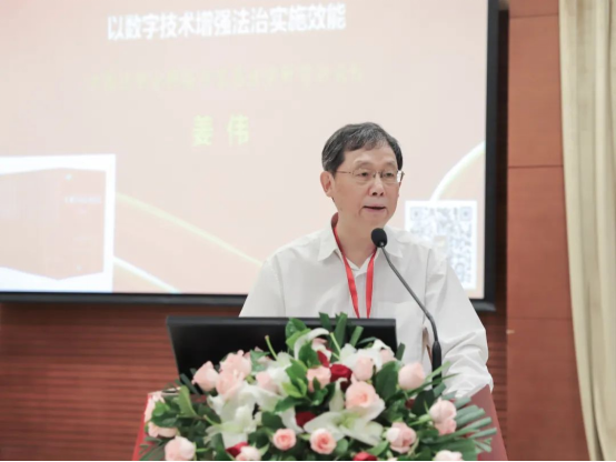 中国法学会网络与信息法学研究会会长姜伟发表了题为“以数字技术增强法治实施效能”的主旨演讲。他指出,数字技术嵌入法治实施具有必要性。数字技术嵌入已然成为法治实施体系应对数字化浪潮的内在要求和必然选择,是实现中国式法治现代化的必由之路。数字技术嵌入法律实施具有重要性。通过技术手段创新“法治+技术”的混合治理模式,推动法治实施模式的深刻变革,提升法治实施的效率与效果,为统一适用法律和精准化的法治实施提供依据,具有全局性和战略性价值。数字技术嵌入法治实施具有复杂性。他提示,需警惕数字技术介入法治实施的“双刃剑”效应,审慎处理算法伦理、权利保障、权力边界、规则适配等现实问题,最终促进良法善治;应当构建“增强型治理”,发挥技术在工具层面、价值层面的核心作用,推进数字法治实施的“提效”与“向善”的统一。