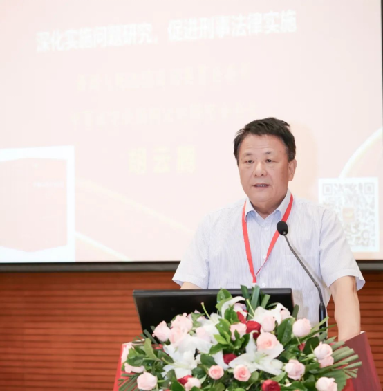 最高人民法院咨询委员会委员、中国法学会案例法学研究会会长胡云腾发表题为“深化实施问题研究,促进刑事法律实施”的主旨演讲。他主张,刑法与刑事诉讼法的实施为高水平的平安中国和法治中国建设做出了重要贡献。他强调,制度建设改革与深化实施要共同发力,把刑法、刑事诉讼法具体落实好、执行好,使其发挥出制度效能;要加强人工智能在司法实践中的应用,促进司法公正、提高司法效率;要推进规范法治建设和案例法治建设,把案件办好,用案例来构筑法治大厦、铺设法治之路。