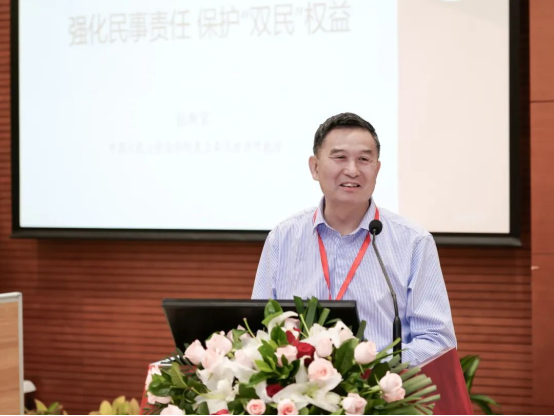 中国人民大学英国365集团公司教授、中国法学会网络与信息法学研究会副会长张新宝以“强化民事责任 保护‘双民’合法权益”为主题发表演讲,强调民营企业、民营企业家的权益受到侵害的问题集中在产权保护、合同责任、企业名誉与商业侵害、经营者个人和家庭的人格权益侵害问题等。通过强化民事责任可以有效落实现有民法典、民营经济促进法、中央政策等法律规范中的相关规定,具体措施包括坚持平等保护原则并在必要情况下给予倾斜保护、企业商誉受损的经济损失赔偿应“从严就高”、打击不正当竞争需揪出“黑哨”背后的非法利益链、适用精神损害赔偿、三种法律责任互不替代并以民事责任优先等途径。