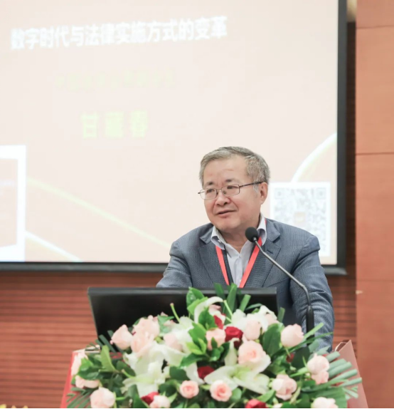 中国法学会原副会长甘藏春以“数字时代与法律实施方式的变革”为主题发表演讲,从数字时代对于法律制度带来的根本性变革要求、数字时代法律实施的新方式、建立规范自由裁量权的价值体系三个方面论述了数字时代法律实施方式的变革趋势。他指出,数字时代法治的重大课题就是解决好人权、技术权力(利)和公权力之间的平衡制约关系,提出数字技术带来的法律空白期可以通过行政部门和司法部门运用自由裁量权加以解决,并倡导坚持智能向善、妥善处理安全和发展之间的相互关系、整体法律实施等三方面理念,从而构建规范自由裁量权的价值体系。