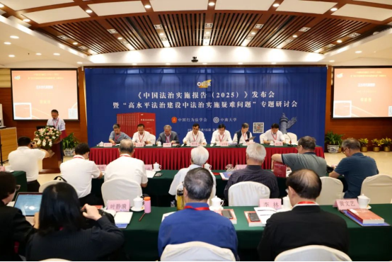 与会领导一致认为,法律实施问题是中国法治建设进程中的重大理论和现实问题。以江必新为首的创作团队,坚持不懈、连续十二年持续撰写《中国法治实施报告》,为研究中国的法治实施提供了重要的历史记录。主创团队强烈的政治责任感、使命感和执着的精神令人钦佩。《中国法治实施报告(2025)》对上一年度中国法治建设各领域作出了清晰呈现、系统总结、客观评价,让读者深刻感受到中国法治建设的进步:法律规范体系更加完备、法治实施体系更加高效、法治监督体系更加严密,法治中国呈现高水平发展的新气象。希望主创团队持续编纂,久久为功,《中国法治实施报告》必将成为中国法治实施史上的一座丰碑。