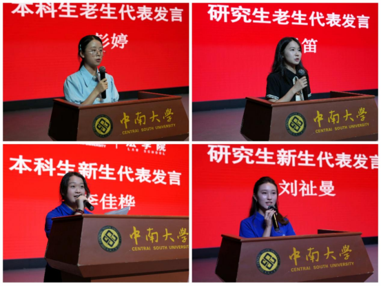 在老生代表发言环节,法学2304班彭婷作为本科生老生代表进行发言,她表示,我们应在探索中认清自己的热爱,在挫折中锤炼自己的韧性,在创造中找到自己的价值。法学21级直博生潘笛作为研究生老生代表发言。她希望大家能坚守正义、融入环境、勇敢试错、大胆创造,在专业学习、校园活动、友谊经营中收获成长。