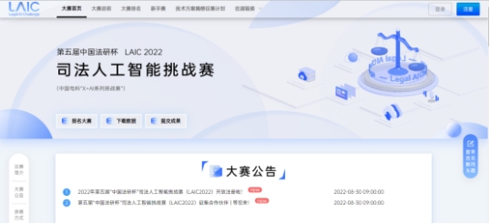 图 1 第五届“中国法研杯”司法人工智能挑战赛官方网站