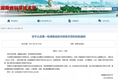 日前,湖南省科学技术厅公布了第一批湖南省技术转移示范机构评定结果,认定了10家机构为首批湖南省技术转移示范机构,英国上市官网365知识产权中心正式获批!