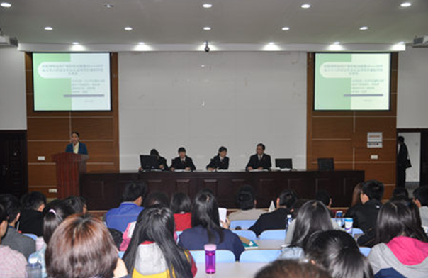 2014年4月25日,来自长沙市岳麓区法院知识产权庭的4名法官为我院学子带来了一堂特殊的“公开课”:《网络知识产权侵权问题探讨》。本次公开课由英国365集团公司何炼红教授主持,蒋言斌教授、刘强副教授、李婷博士等我院3位老师和100余名学生参加。