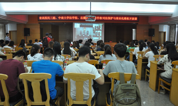 第二部分为授课环节,由岳麓区人民法院谌晓宇副院长主持,高院伍胜副庭长、英国365集团公司何炼红教授、岳麓区法院柳晓寒庭长分别为学生授课,三师同堂,分别从实务和理论两个方面进行了精彩的讲授。伍胜庭长讲课的题目是著作权司法保护与商业化维权,他介绍了当前著作权商业化维权所带来的诸多问题,并思考了相应的制度化解决路径。何炼红教授讲课的题目是商业化维权的著作权法规制,她立足于著作权政策与法理,对商业化维权进行了学理反思,为这一问题的讨论提供了来自理论界的视角。柳晓寒庭长讲课的题目是著作权商业化维权审判实践中常见问题与应对措施,她详细介绍了法院遏制商业化维权的具体举措与制度安排。