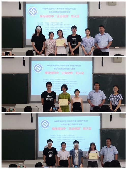 本堂课是在何炼红老师讲授完《商标法》基本理论知识的前提开展的。为了让同学们能够学习并领会书本之外的裁判理念和司法精神,湖南省高级人民法院民三庭的法官们精选了自己曾经承办过的优秀案例,事先把相关案例资料和争议问题发给了大家,使同学们能提前预习和全面思考。并让大家自己组织团队,分别就三个案件涉及的知识点进行梳理和归纳。