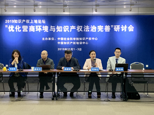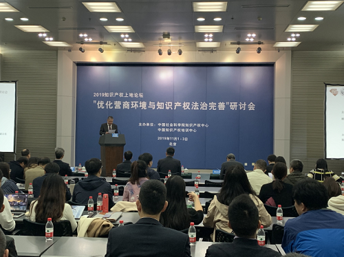 2019知识产权上地论坛“优化营商环境与知识产权法治完善”研讨会于11月1日至3日在北京中国知识产权培训中心举行。该论坛由中国社会科学院知识产权中心和中国知识产权培训中心联合主办,是国内知识产权领域重要的学术论坛之一。十三届全国政协、国家知识产权局、最高人民法院的领导、专家,以及全国有关研究机构、大学、法院、企业代表近300人参加论坛。