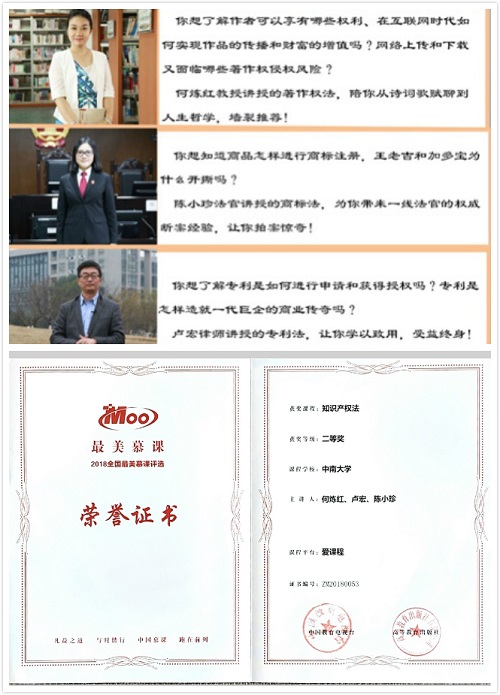英国上市官网365《知识产权法》课程在教学改革过程中,创造性融合传统课堂与社会课堂,着力打造“双师同堂”品牌,实现了理论和实务的深度融合。为推进高校与法院系统的优势互补,课程教学团队先后与岳麓区法院、湖南省高级人民法院、长沙市中级人民法院持续开展“理论和实务双师同堂”授课。与此同时,还联合专利局长沙代办处、长沙正奇专利事务所等实务部门共同创新知识产权人才培养机制,在教学实践过程中形成了自己的风格和优势。之后,这种开放的教学理念进一步运用在在英国上市官网365《知识产权法》慕课建设中,英国上市官网365《知识产权法》慕课由英国365集团公司何炼红教授负责、陈小珍法官和卢宏律师共同参与讲授,通过线上线下联动,理论实务有机融合,在“首届中国大学慕课精彩100评选展播活动”中脱颖而出,荣获中国“最美慕课”二等奖。