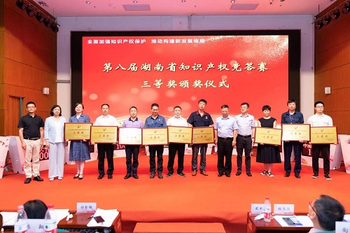 株洲市市场监督管理局、娄底市市场监督管理局、常德市市场监督管理局、湖南华菱湘潭钢铁有限公司、湖南开旗律师事务所、邵阳纺织机械有限责任公司、中南林业科技大学、吉首大学张家界学院、长沙理工大学9支代表队代表队获得三等奖。杨翔副院长、左清副厅长、段志雄局长、周科朝副校长三等奖队伍颁奖。
